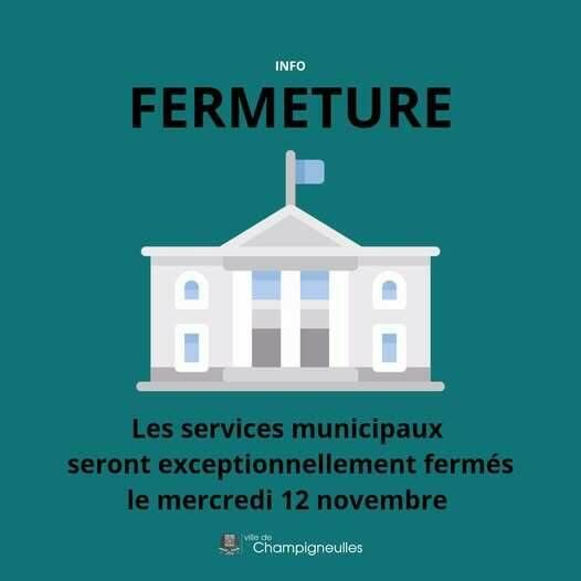 En raison de l’organisation d’un temps annuel de cohésion et d’échanges pour le personnel communal, les services municipaux seront exceptionnellement fermés le mercredi 12 novembre.