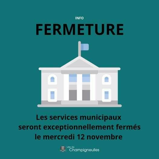 579920908 1414433313902691 7427366656493933220 nEn raison de l’organisation d’un temps annuel de cohésion et d’échanges pour le personnel communal, les services municipaux seront exceptionnellement fermés le mercredi 12 novembre.